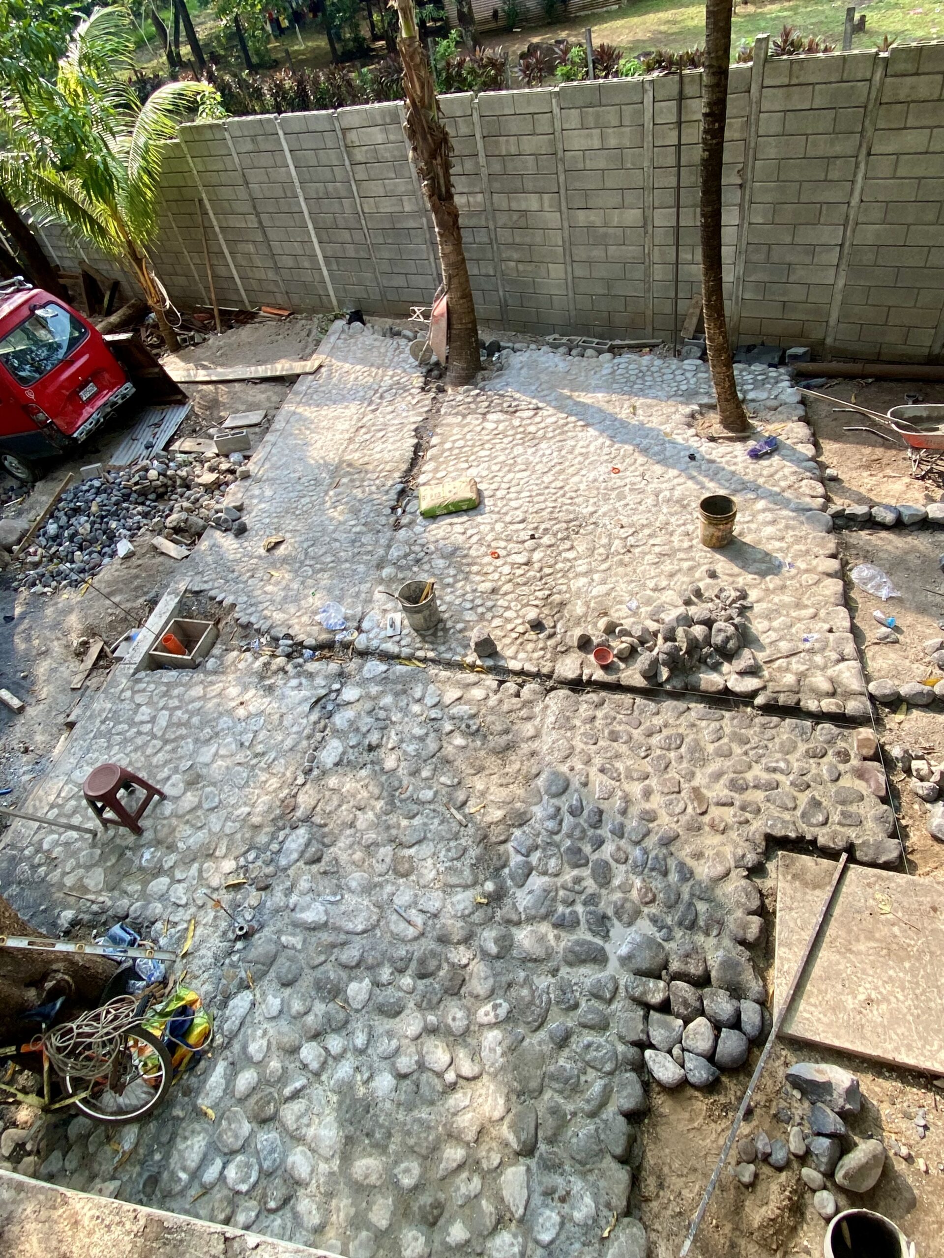 Every year around Christmas, we take a two-week break from serving food. This gives us a much-needed rest and also allows our staff to have a break. Those two weeks were supposed to end yesterday, but Maudilio had a great idea to use this quieter time to lay cobblestone in the area where we serve meals.
